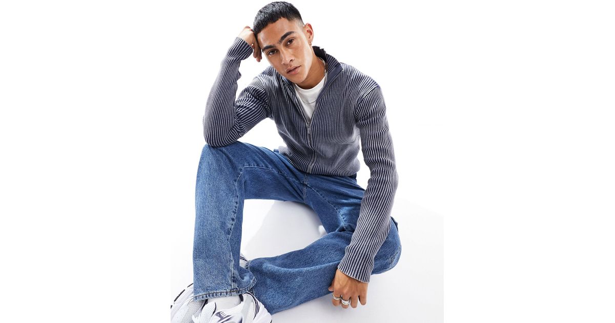 Bershka Ribbed Zip Through Jumper in Blue for Men Lyst UK