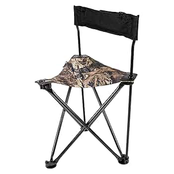 - Black Sierra XL Tripod Hunting Stool W/Backrest, Lightweight Portable Fishing Chair W/Cupholder And Carry Strap, Supports 225 Lbs, Portable Outdoor