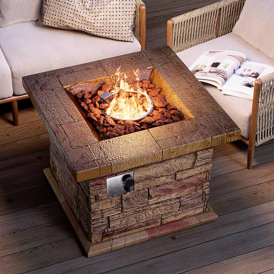- 32'' Propane Fire Pit Table 50,000 BTU Square Firepit Heater Bed