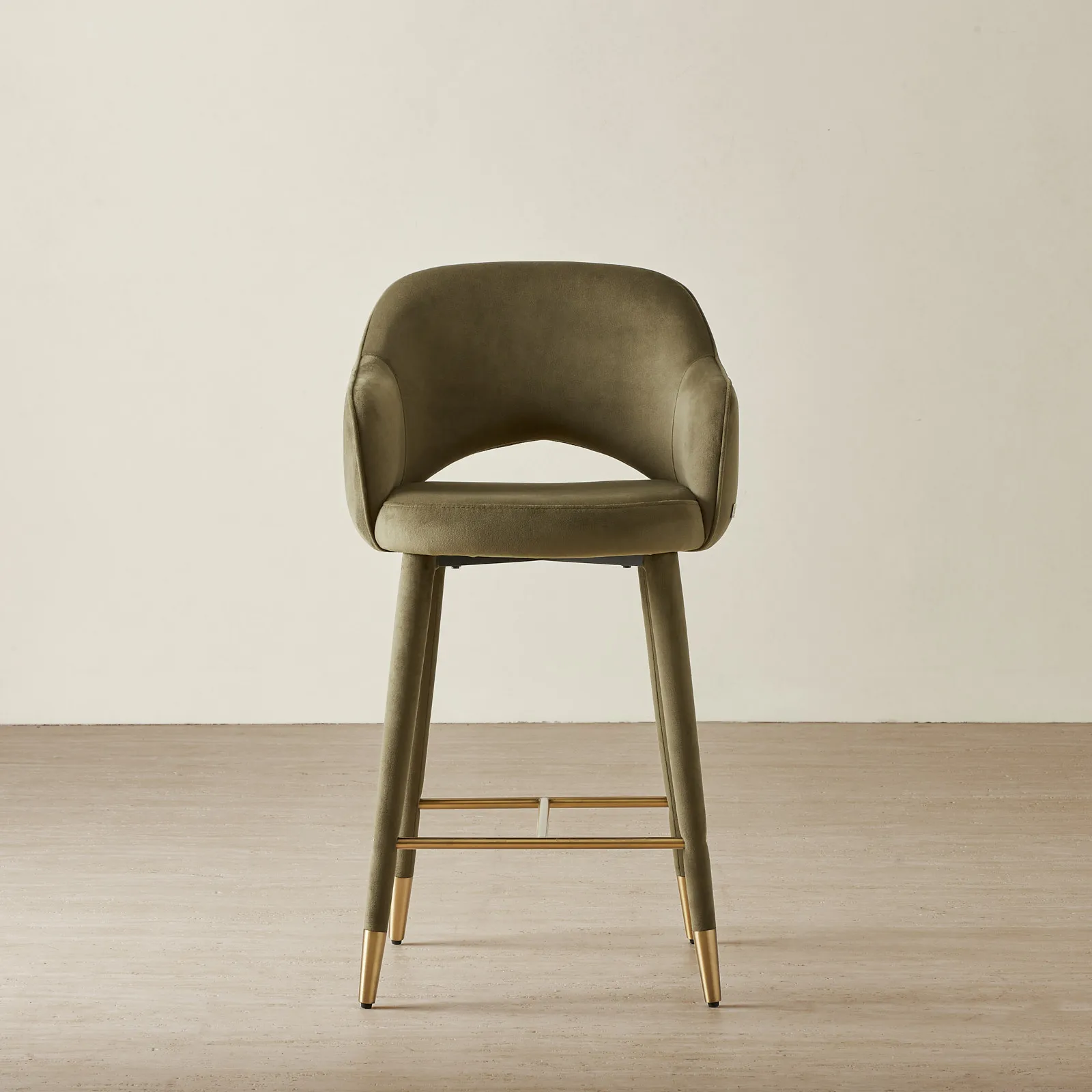Adrianna Olive Green Velvet 67cm Counter Stool Koala Living