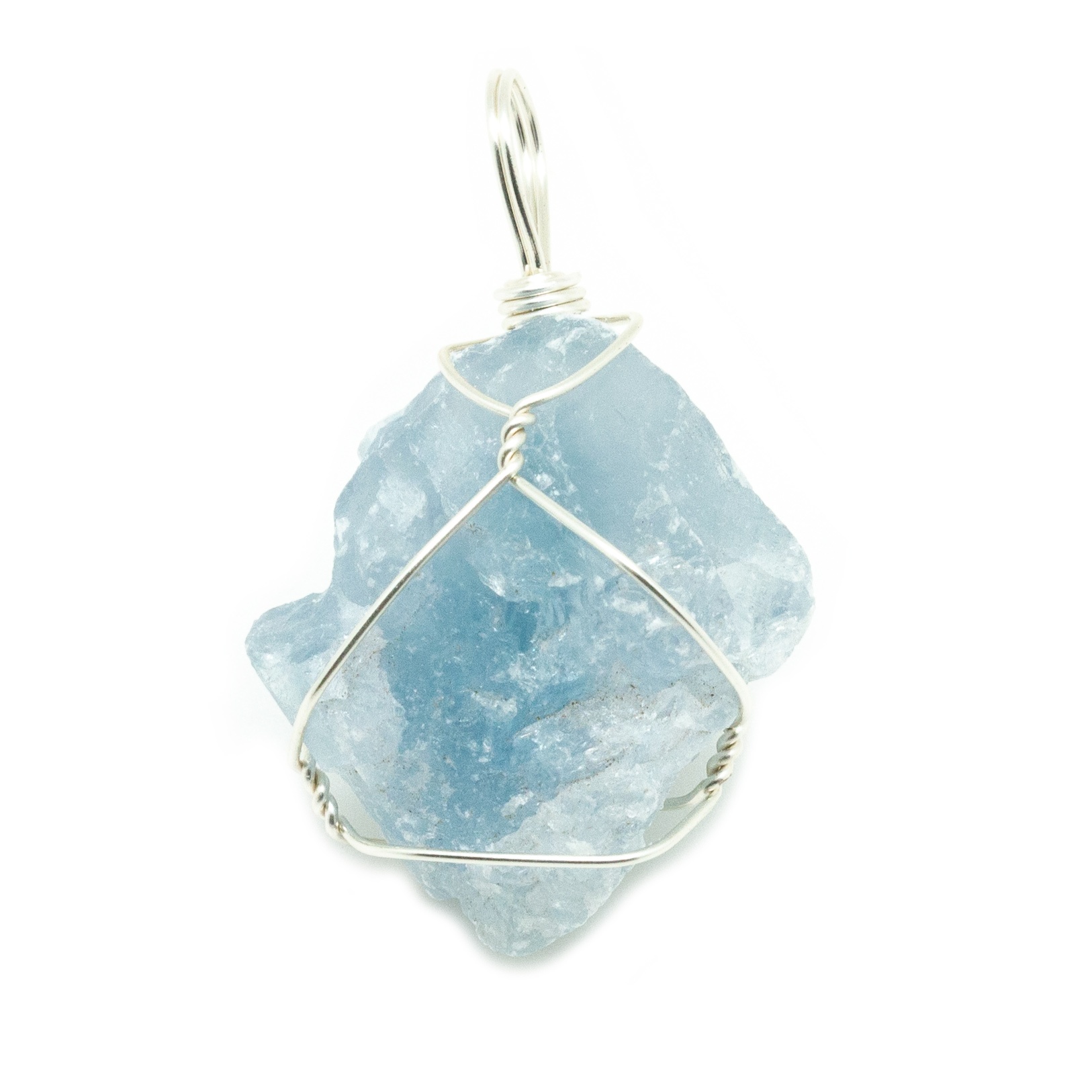 - Raw Blue Celestite Crystal Pendant Necklace Silver Plated Wire