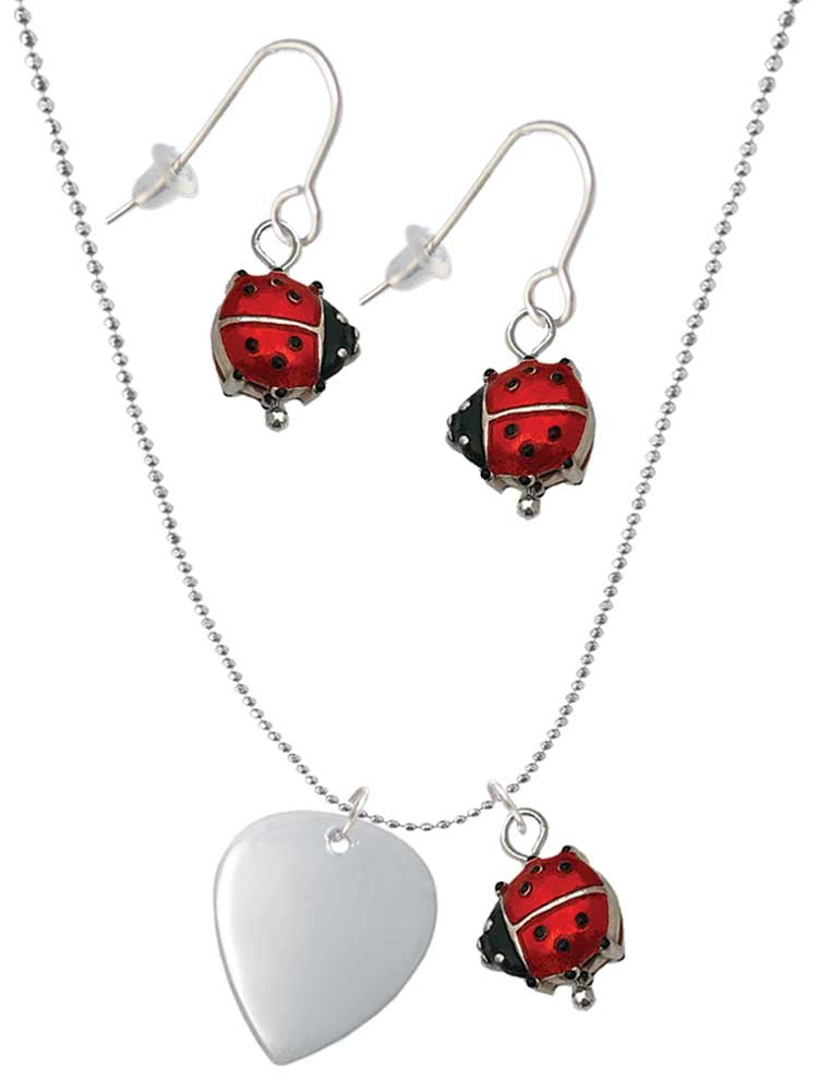 Delight Jewelry Silvertone Large Guitar Pick Red Lucky Ladybug