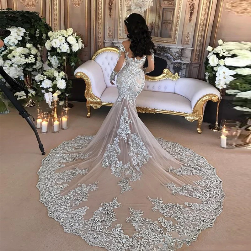 Laço De Prata Do Vintage Sereia Vestido De Casamento Muçulmano Com