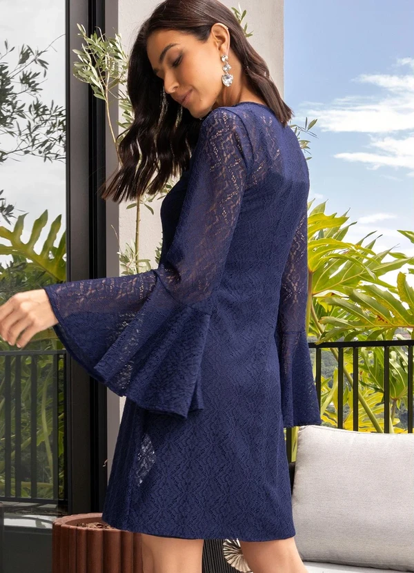 - Vestido Glória Curto de Renda Azul Marinho Mariah Store