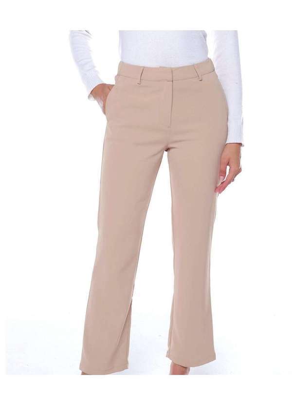 Calça Social Feminina Alfaiataria Reta Bege Sob Moda