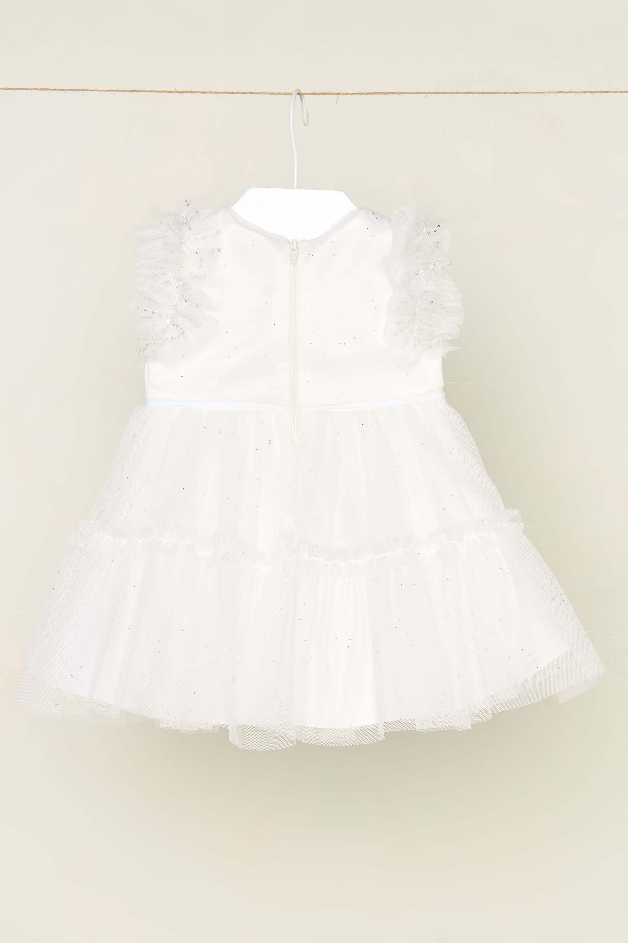Vestido Infantil Petit Cherie Tule Branco com Detalhes em Renda
