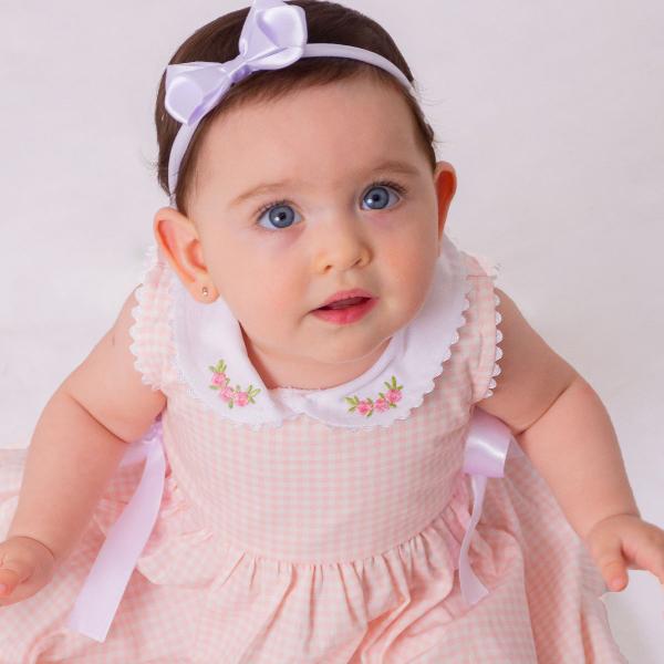 - Vestido de Bebê Menina Luxo Xadrez com Tiara 100% Algodão Mundo