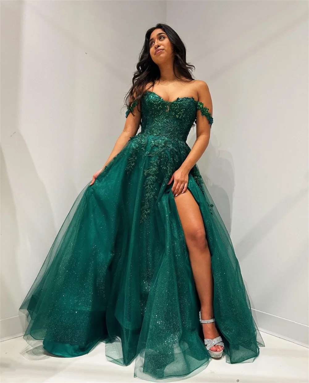 - Yipeisha esmeralda verde vestidos de noite fora do ombro cetim