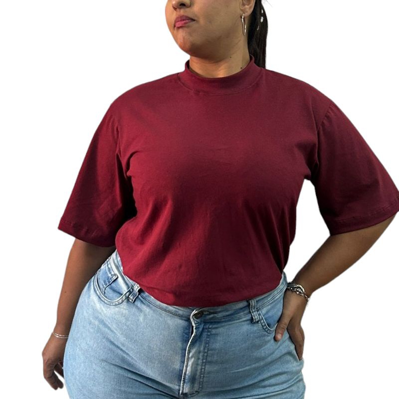 Blusa Camiseta Feminina Plus Size Lisa Gola Alta T-shirt Algodão