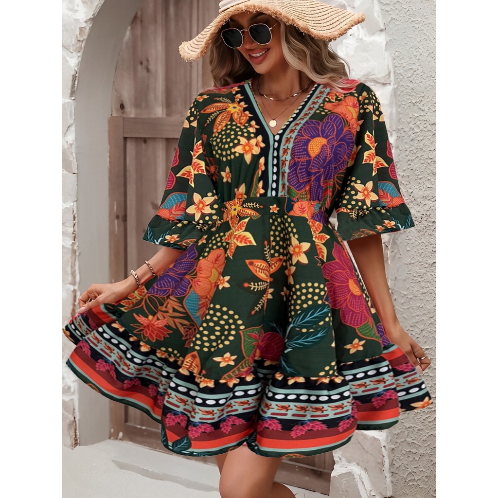 Vestido Curto Soltinho Floral Feminino Fresquinho Elegante Moda