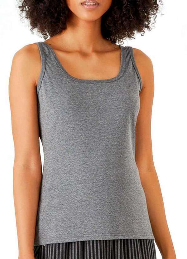 - Regata Básica Feminina Alça Fina Em Algodão CINZA Malwee