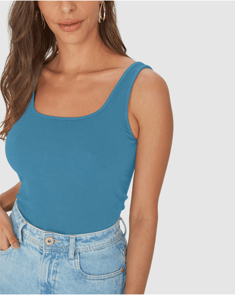 Regata Básica Feminina Alça Média Em Algodão AZUL Malwee