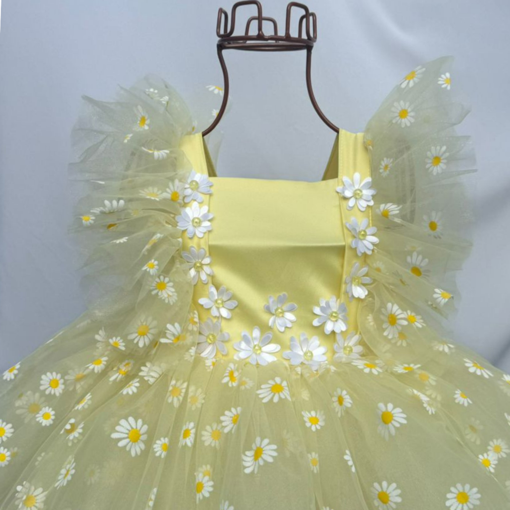 - Vestido Floral Saia De Tule Infantil Amarela Vestido De Festa