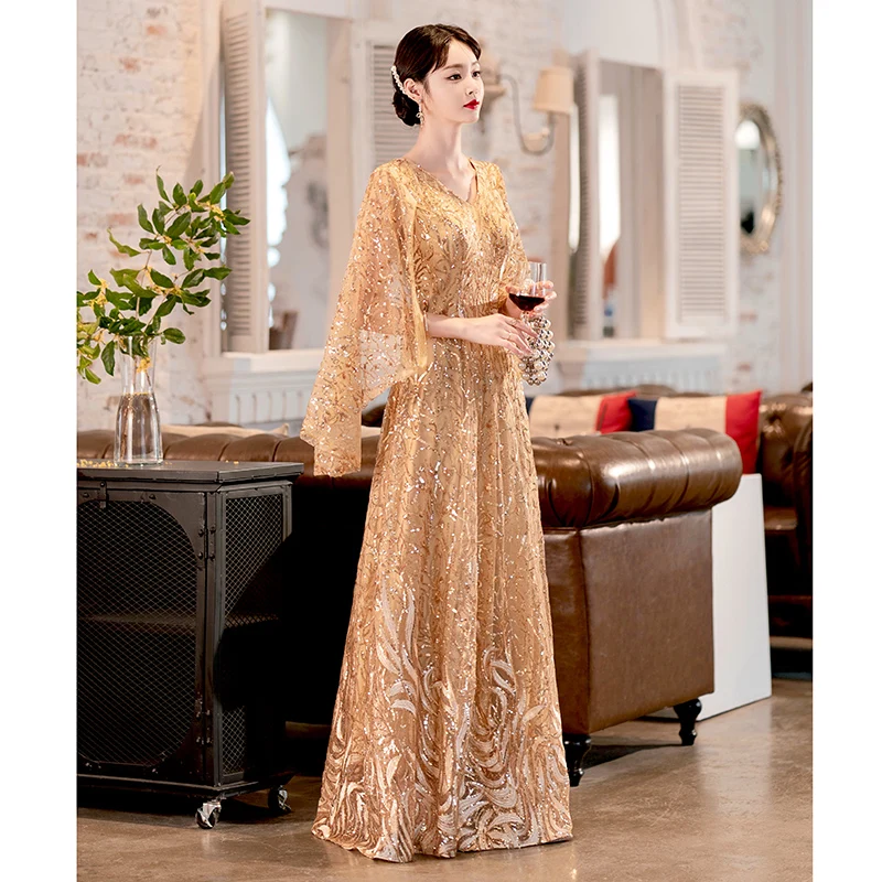 Dourado Roupas Femininas De Festa De Casamento Vestido De Festa