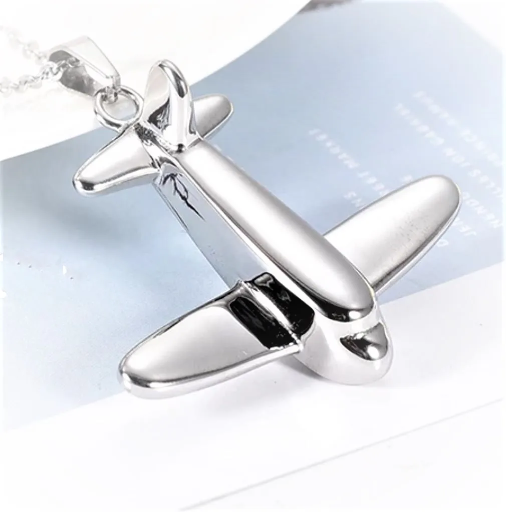 Plane Stainless Steel Cremation Urn Pendant Aviation Souvenir