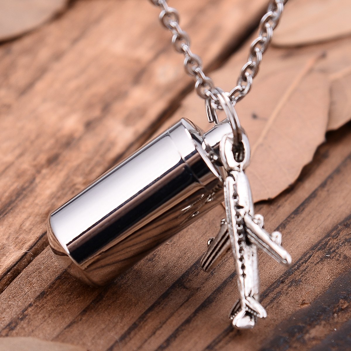 Cremation Urn Necklace Aircraft Airplane Charm And Cylinder