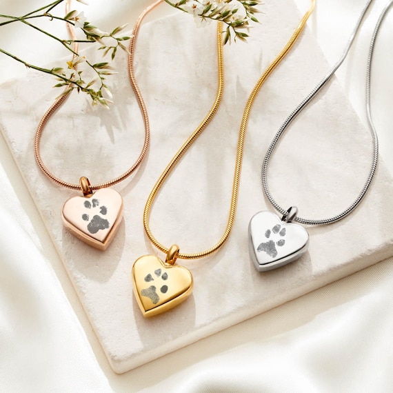 - Personalised Rose Gold Paw Print Ashes Necklace Engravers Guild