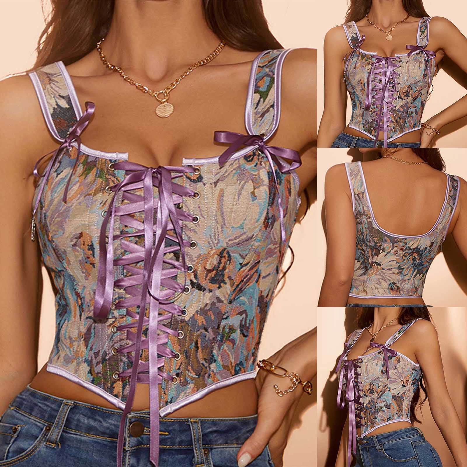 Today's Deal Abomasnow Womens Floral Embroidery Corset Top Trendy