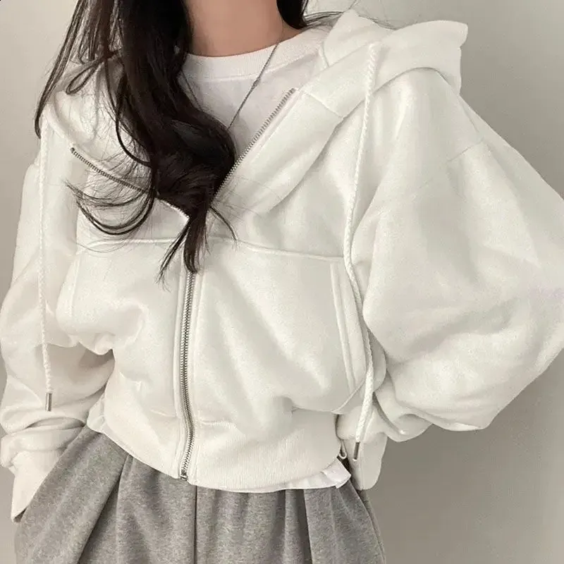 Cropped Zip Up Hoodie: Retro Oversized Sweatshirt, Autumn Fashion