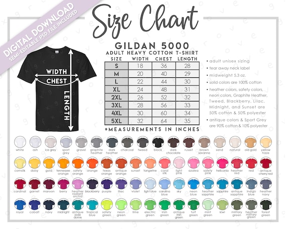 Semi-editable G500 Size Chart Color Chart • Gildan Heavy Cotton, Size Chart for Shoes TheOlawaleBrand Cheap Sale
