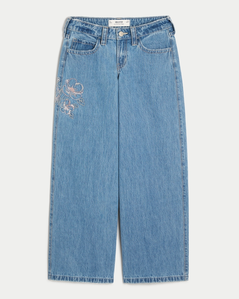 Women's Low-Rise Medium Wash Embroidered Shell Super Baggy Jeans