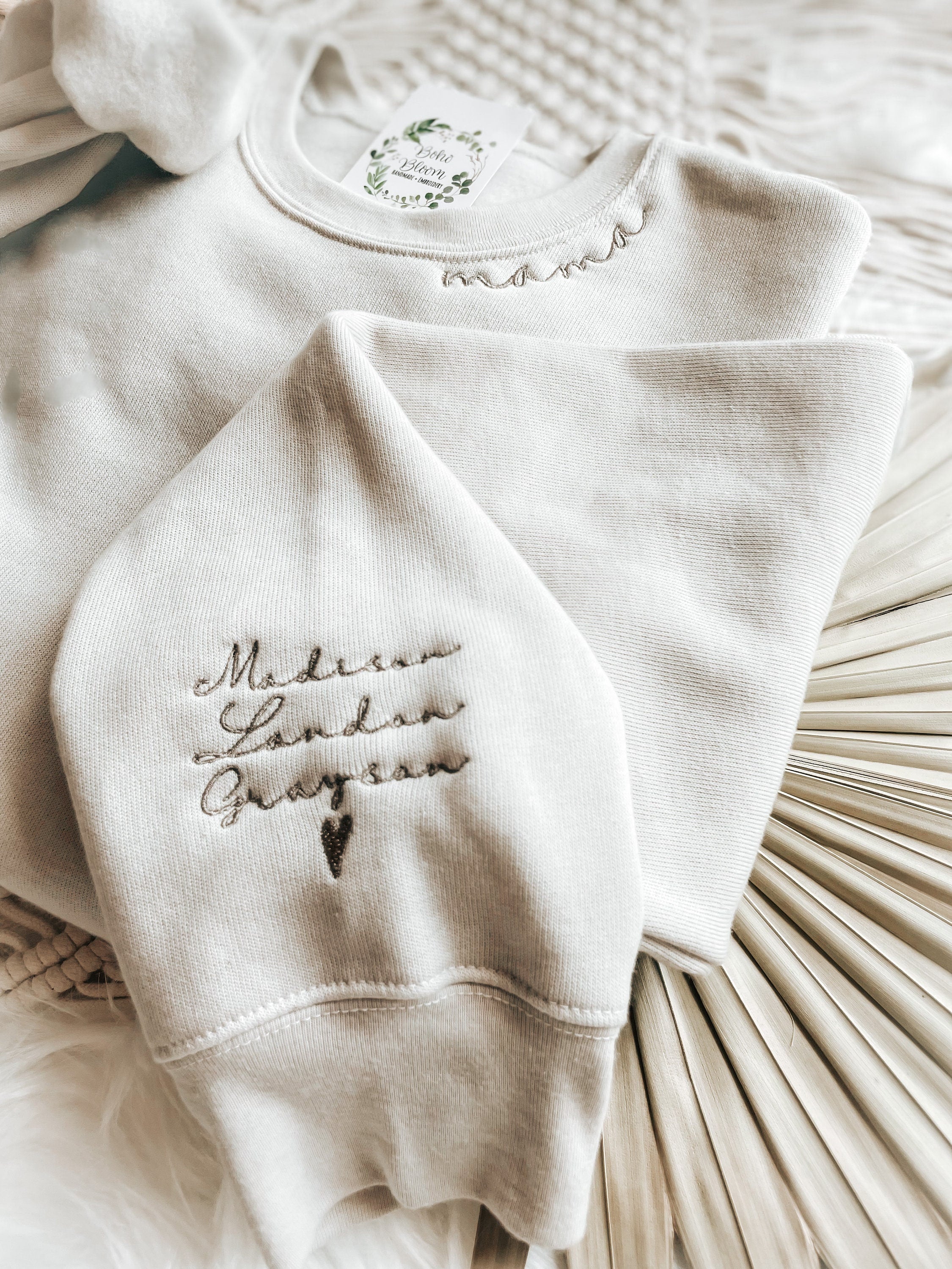 - Embroidered Heart on Sleeve Sweatshirt or Hoodie – Santina Embroidery