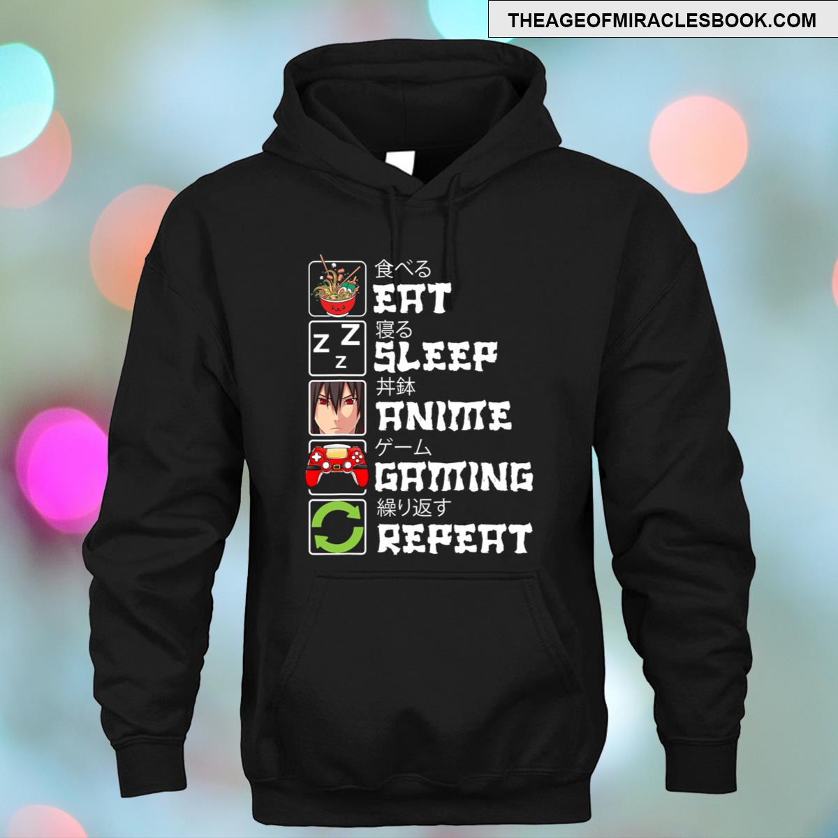 - Anime Hoodie Eat Sleep Anime Gaming Repeat Shirt Funny Kawaii