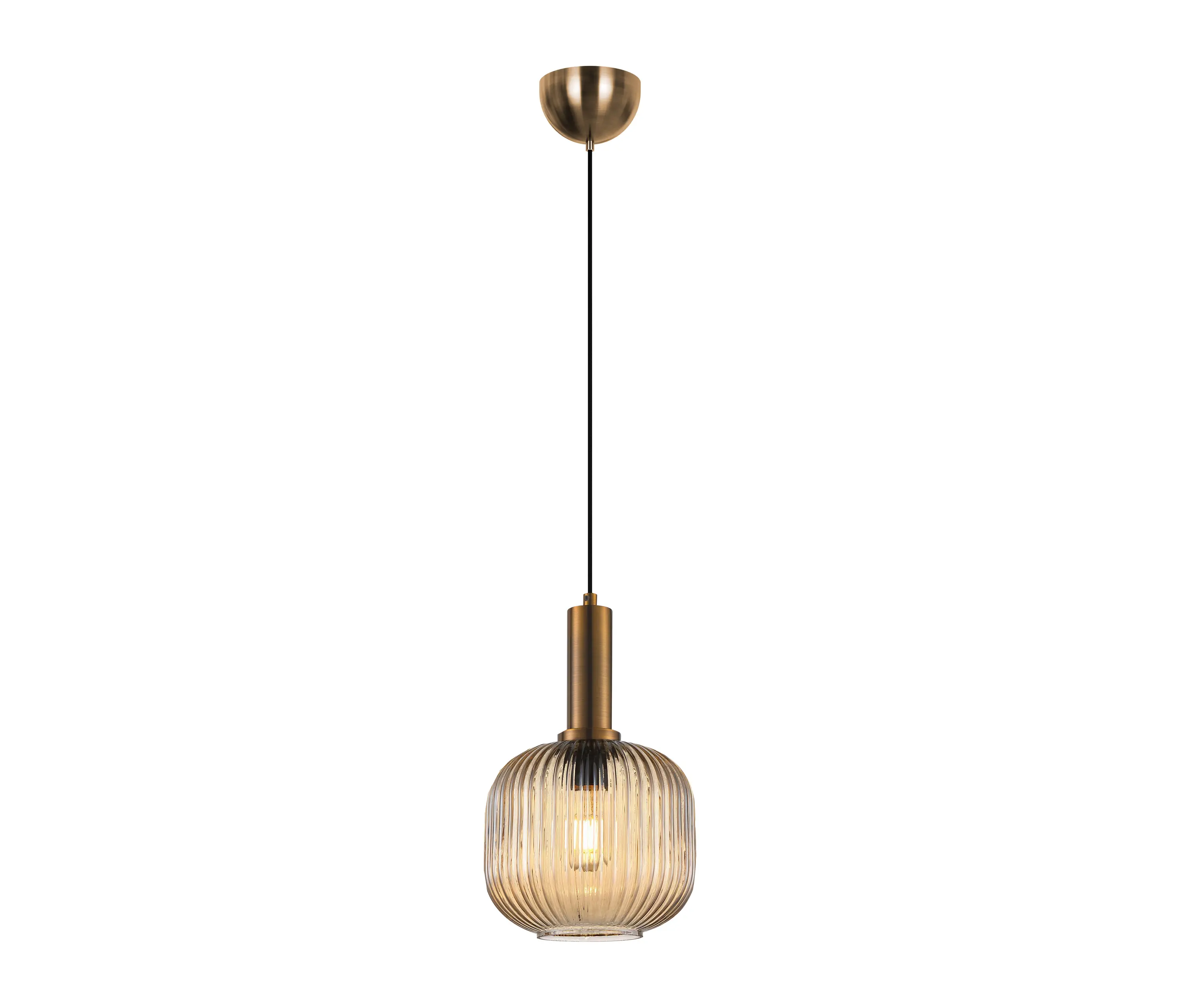 - Ribbed Glass Globe Pendant with Antique Brass Metalwork
