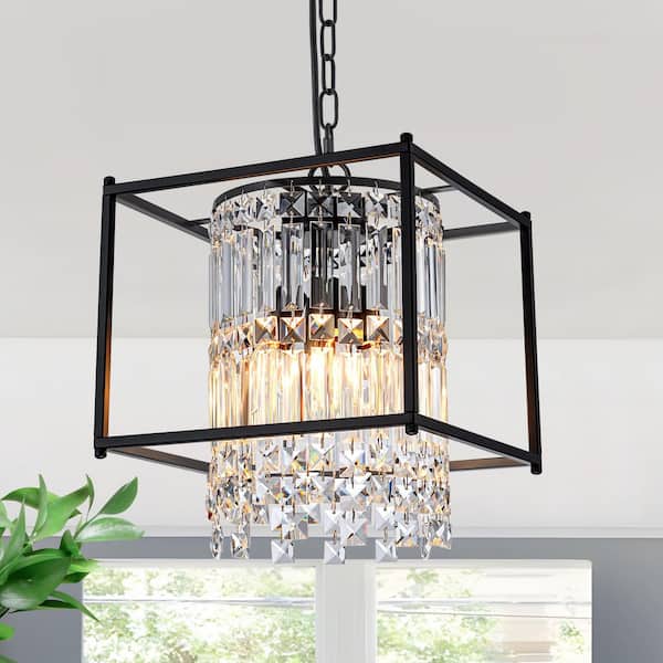 GoYeel Lights Black Modern Geometric Crystal Chandelier 4-Light