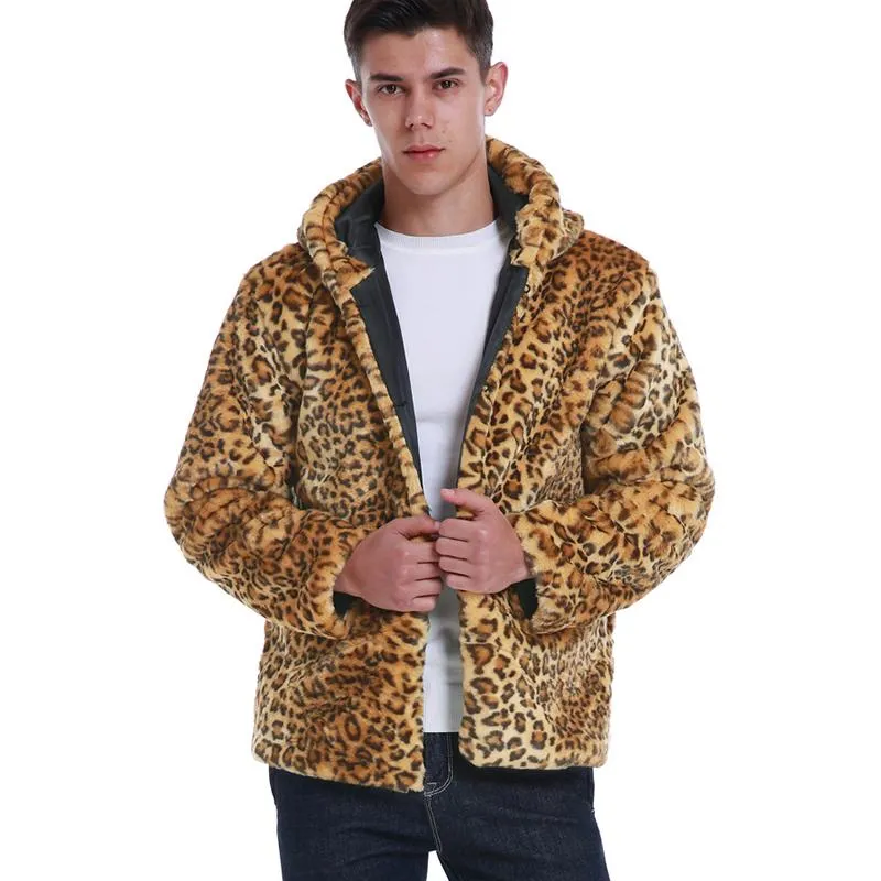 Oversized Fur Coat Mens Leopard Hoodie Warm Autumn/Winter Long