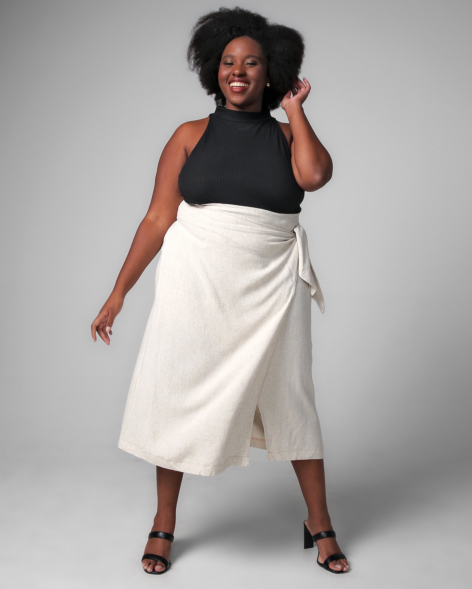 Riachuelo Saia Plus SIze Feminina Midi Pareô Bege Filipa by