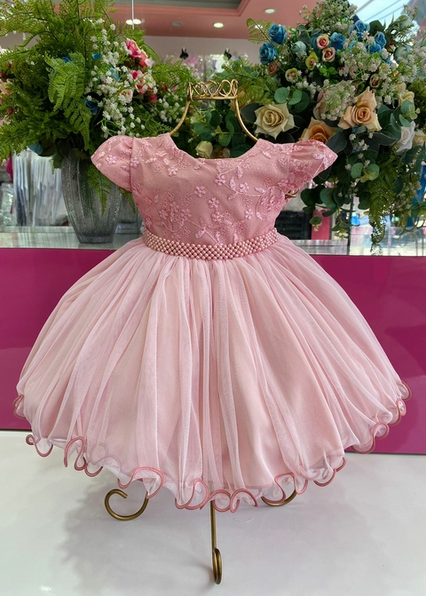 2102 Vestido Bebê Luxo Rosê C/ Brilho