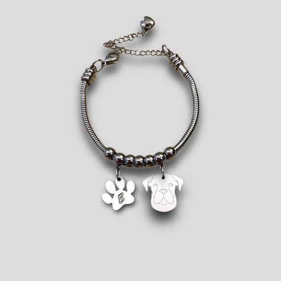 Boxer Dog Bracelet and Paw/heart With Engraved Initial Canada
