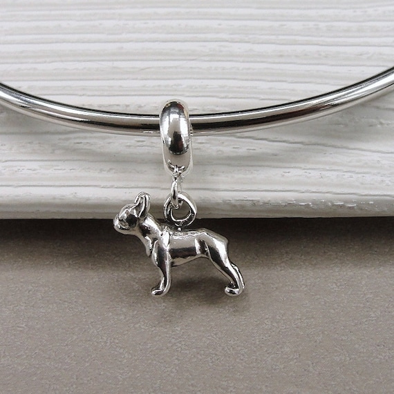 Sterling Silver Boston Terrier Dangle Bead Charm, Tiny Boston