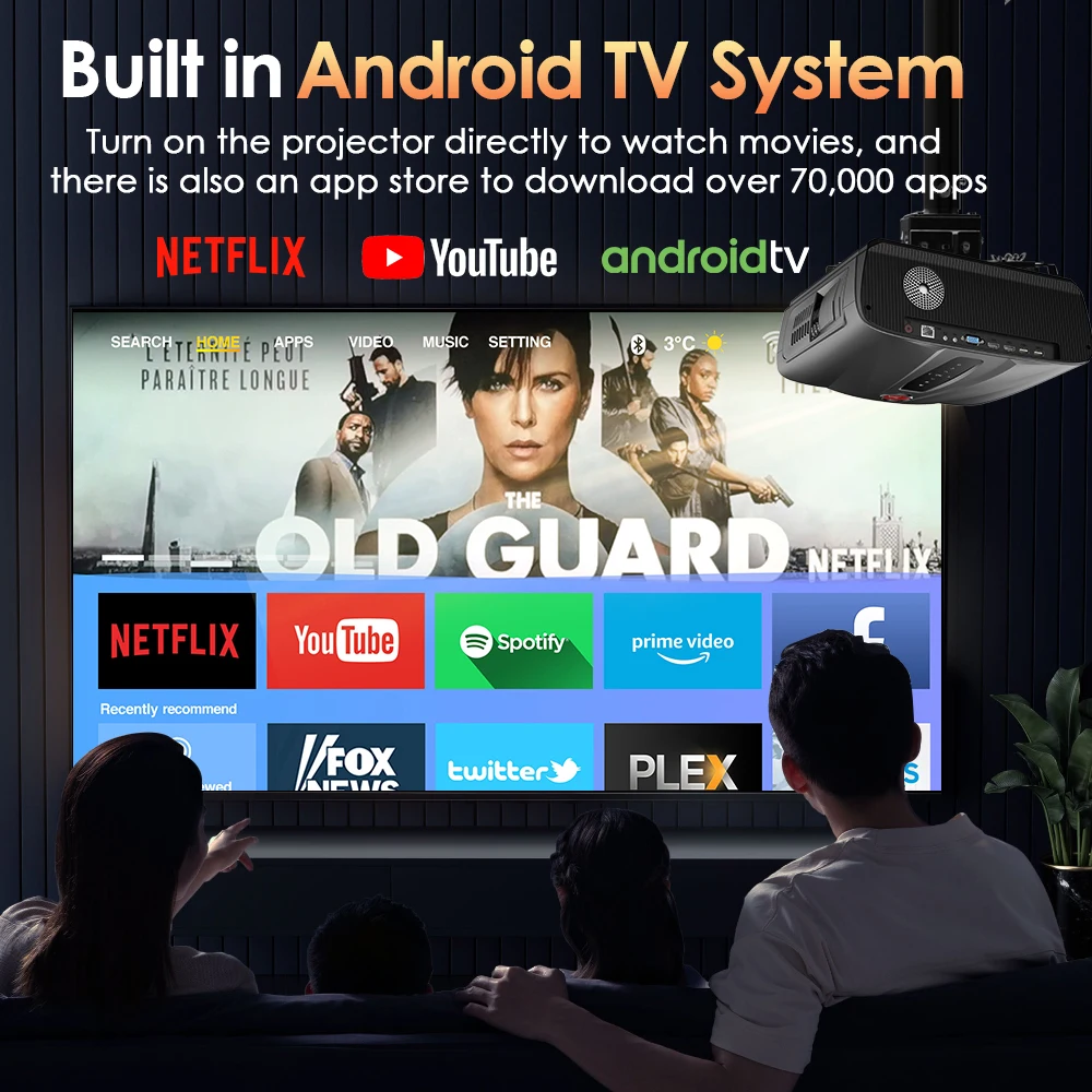 4K TV Projector for Smartphone Android Bluetooth Wifi for Home