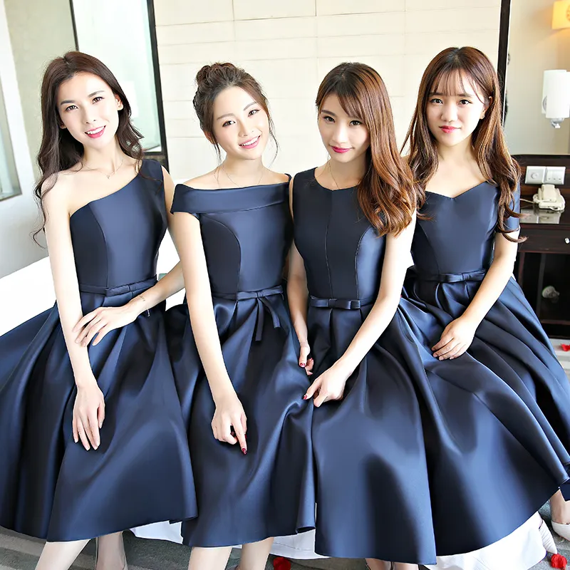 Elegant Satin Short Bridesmaid Dresses 2024 Navy Blue Knee Length, Size Chart for Shoes TheOlawaleBrand Cheap Sale
