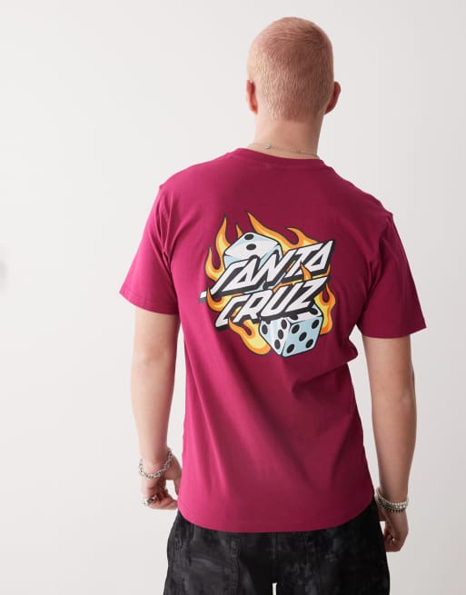 Santa Cruz T-shirt rossa con stampa di fiamme e dadi sul retro