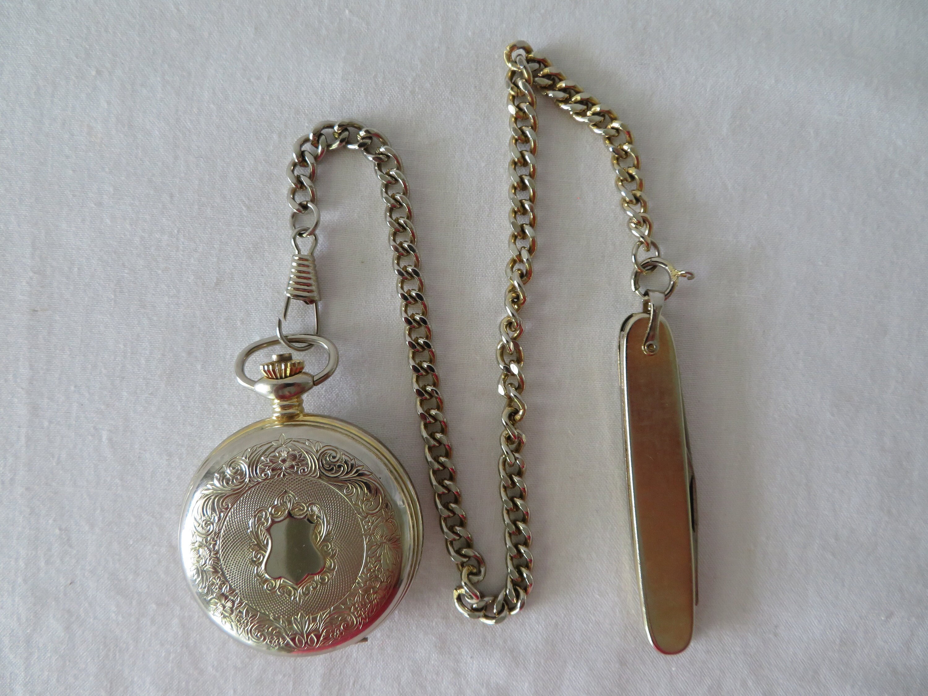 Majestron Quartz Pocket Watch With Knife Chain Fob