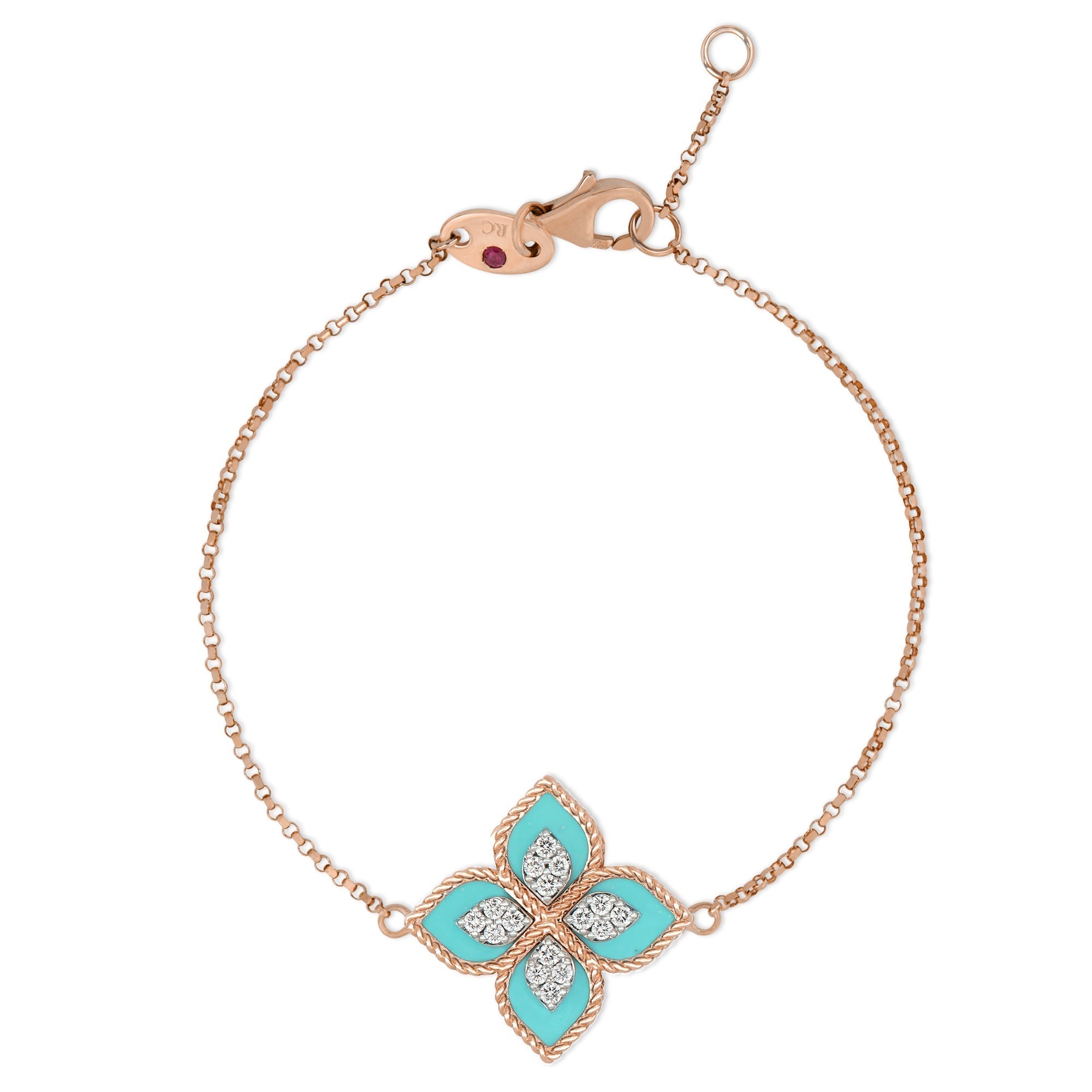 Roberto Coin Princess Flower 18ct Rose Gold Turquoise Diamond