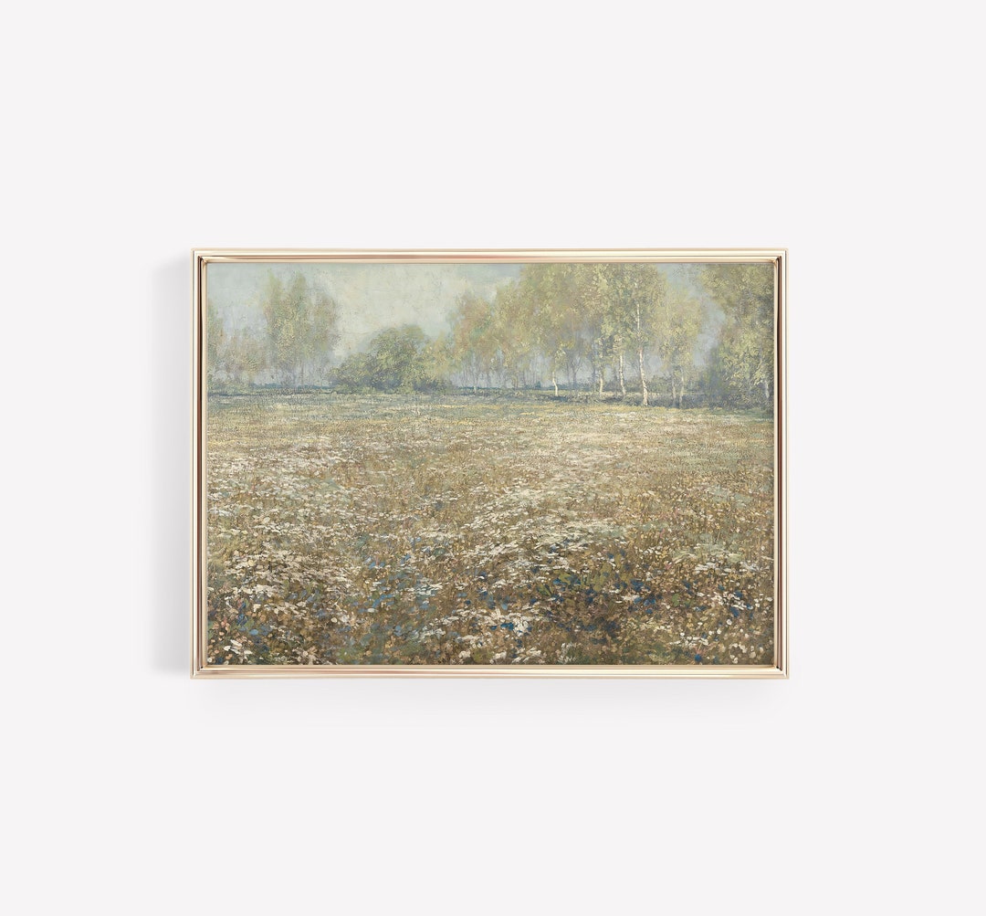 - Vintage Frühlingswiese Gemälde, antikes Country Field