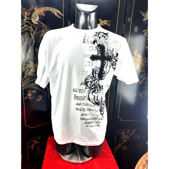 Vintage Men's T-Shirt Karl Kani Gold Mens L Tshirt Studded Goth Black Velvet Cross Shirt
