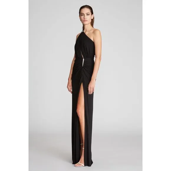 - Halston Long Sleeve Ruched Split Maxi Dress – Mew Mews