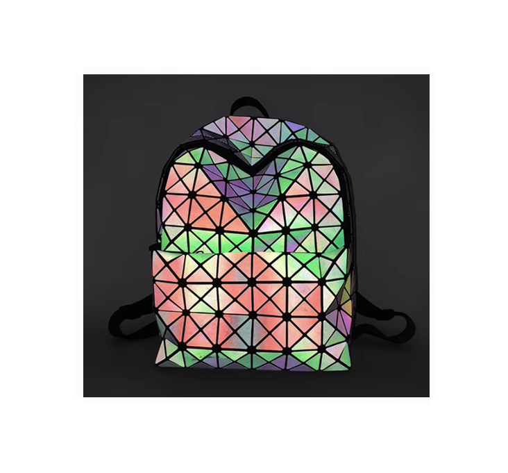 - Womens Reflective Backpack Luminous Holographic Geometric Travel
