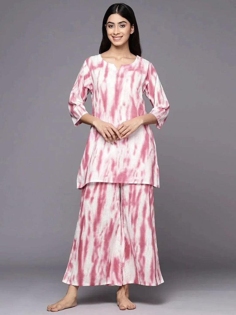Buy Pink Printed Cotton Night Suit Online at Libas