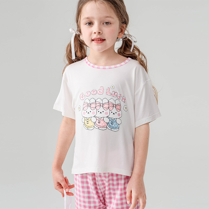 - Spring Autumn Pink Daisy Children's Clothing Sets Girl Sleepwear