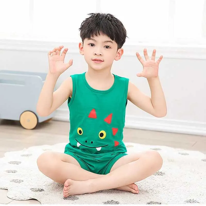 Summer Fun! Kids' Sleeveless Cotton Pajama Set Childrens Summer Clothes Best Seller, Size Chart for Shoes TheOlawaleBrand Cheap Sale