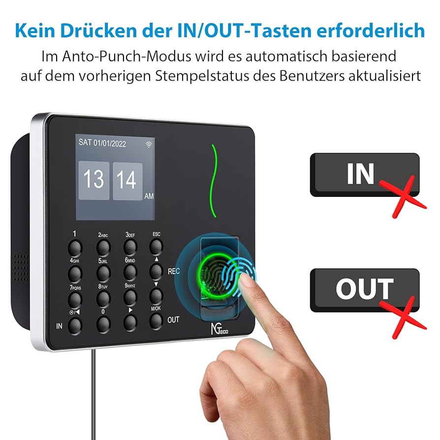 Stechuhr Zeiterfassung Mitarbeiter NGTeco Fingerabdruck-Stempeluhr