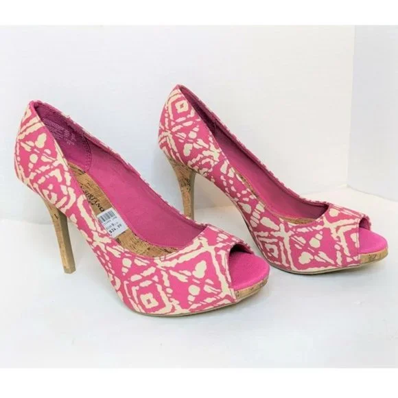 Christian Siriano for Payless Kate Peep Toe Heels Pink Batik Shoes Womens Sz