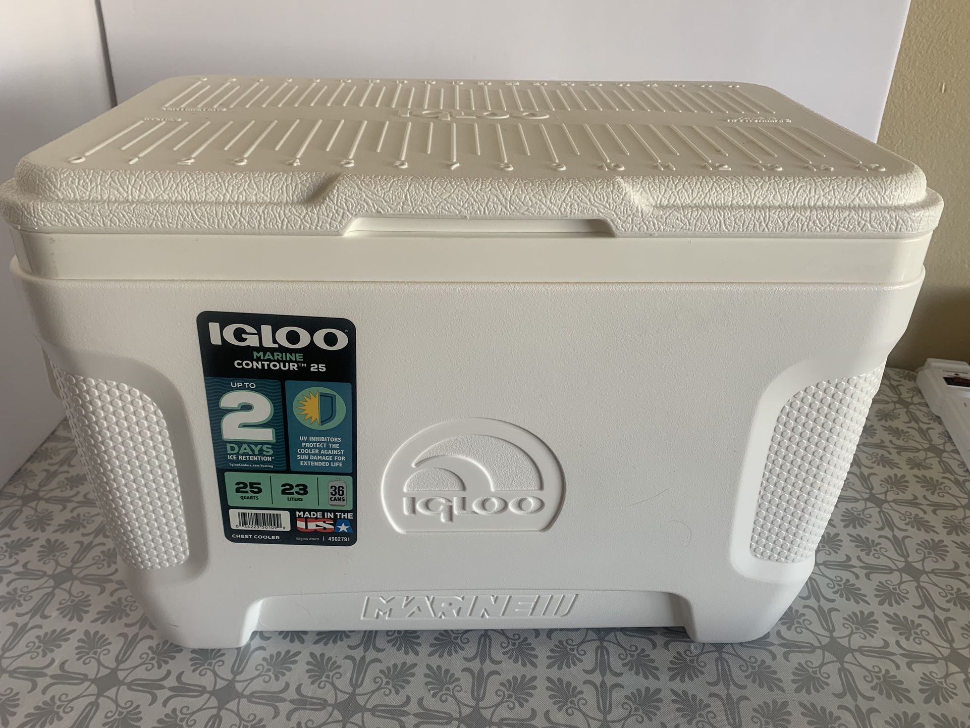 - Igloo 25 QT Marine Ultra Ice Chest Cooler, White and Gray