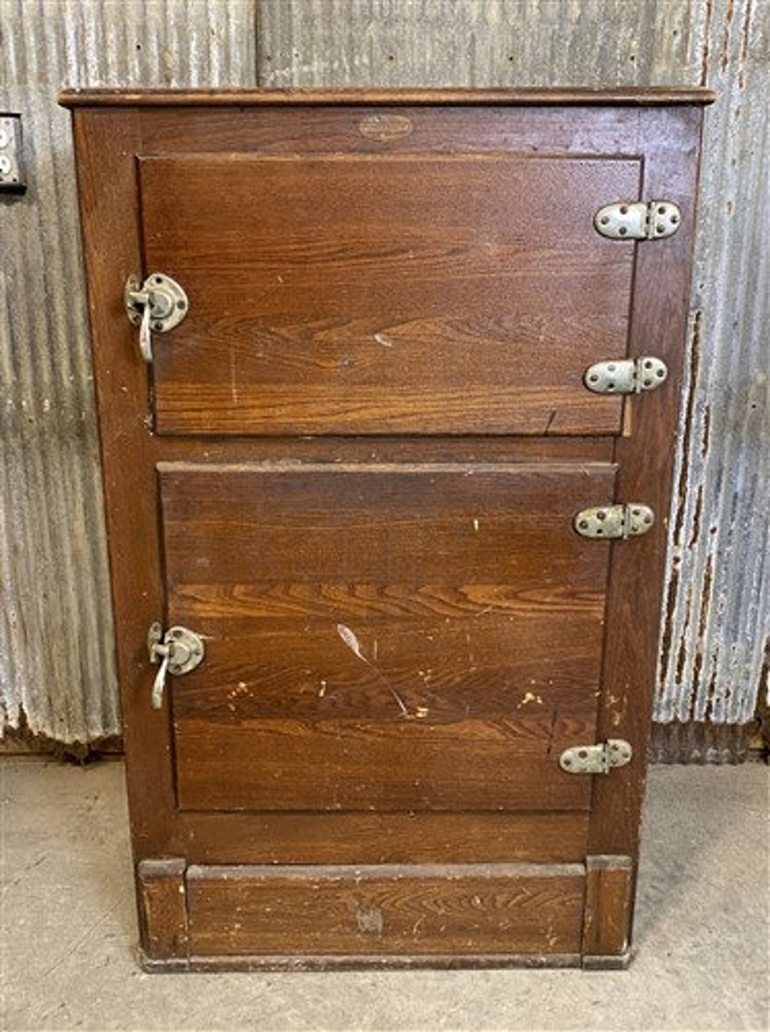Large Antique Ice Box Vintage Oak Icebox Refrigerator, Door Ice